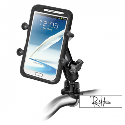 Consists of a zinc coated u-bolt base, double socket arm and universal spring loaded X-Grip® IV holder for 5” large phones and tablets. Included in this package is hardware that will accommodate rails from 0.50” to 1.25” in diameter. Compatible with handheld devices that will fit the dimensions listed below. It is important to verify the dimensions of...