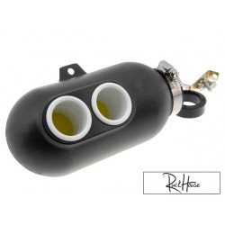 With the Motoforce Racing Airbox, we can offer you the possibility to reduce the loud induction noise of an open air filter to a more muffled and pleasant sound. Equipped with 28 / 35 / 50mm connections, the airbox can of course be mounted onto all common carburettors! With a length of 175mm and a diameter of 90mm, it has the perfect size for your scooter.