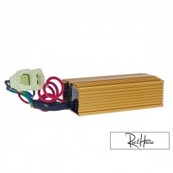 Low-cost dropping resistor for the lighting system of various 50, 125 and 150cc GY6 4-stroke Kymco and Chinese-built scooters. (5 Watt / 5 Ohm & 20 Watt 5,9 Ohm)