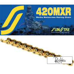 Works 420 & 428 Motocross / off road racingchain • Deep gold side plates & gold inner plates. Super strong & lightweight design for high performance / racing mini off road & motocross machines. Utilizes TST (TripleStar Treated) ultra hard pins & 100% heat treated components for high strength & durability. Uses clip type connecting...