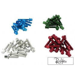 STR8 transmission cover retaining bolts for Minarelli engines. The blue and red bolts as well as the chrome-coated ones are made of anodised aluminium and should be used for custom purposes only. The black ones can, however, be safely used to replace the original bolts.