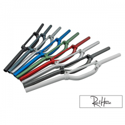 This downhill handlebar has a cool, shot-peened look and is available in a choice of colours. Ends are open so as to allow for fitting anti-vibration handlebar weights. The fitting handlebar clamp can be ordered here for some models; if yours is not included in our product range, you can also search in bicycle shops for a fitting clamp with reduction...