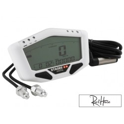 Universal speedometer for supermotos, scooters etc. featuring all essential functions and road approval. Available in three colors: Black, White, and Orange. Thanks to its size, functionality, and specific displays, this speedometer is ideal for 50cc supermotos and motocross bikes, but can be universally installed on all two-wheelers. The Stage6...