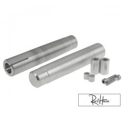 The Polini Big Evolution grips are made from two different rubber compounds. The inner part of the grip that contacts the handlebar is made from a harder rubber compound and thus offers increased stability. The outer part of the grip that contacts the hand / glove is made from a softer rubber compound to give the best possible grip in all conditions. Set...