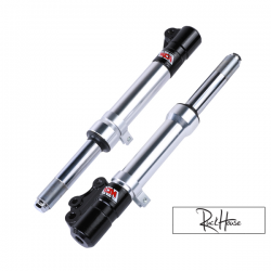 These forks make a great upgrade to the clapped out stock tubes you’ve been running. Enjoy the smooth ride, improved handling and some fresh, delicious chrome! They have a 26mm tube and work with 10 mm axles and front disc brakes. They fit Zuma 50F, Eton Beamer and CSC go, among others.