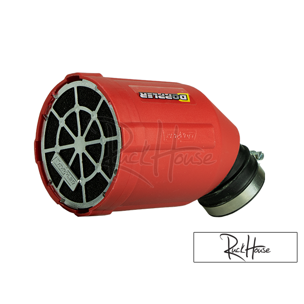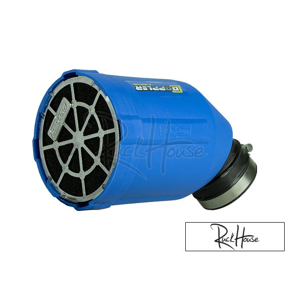 Very likely to be one of the most advanced airfilters on the market. Doppler has designed a system utilising the so-called venturi effect. What does that mean? The idea is that by reducing the effective flow-area in precisely defined places, one reduces the suction needed to start an airflow. Just think of different straws, one with too small a flow area (diameter of say half a millimeter) you will find it difficult to suck your drink through, with a straw of a diameter of 5 cm again you will notice that suction poses problems. Flow areas too small as well as those too large require loads of suction forces, and that's something our 70cc engines can't really supply by the truckload. Doppler has set out to solve this problem, their filter comes with a second insert to adjust it to the use with any carb between 12mm and 21. And though it has not been mentioned yet: the venturi design also helps to keep the noise down as much as possible.