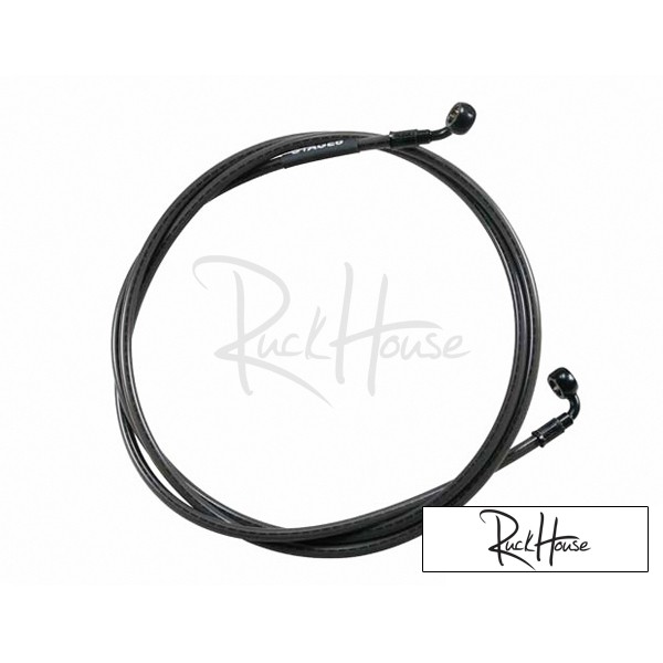 Stage6 has developed this high-quality braided-steel brake hose specifically with racing in mind. It prevents brake fade and achieves a constant pressure point. Minimal expansion and a thorough checking of each hose ensure maximum safety and brake efficiency in every situation. Using braided steel brake hoses prevents excessive expansion of brake hoses, resulting in a better feedback from the lever. These hoses have been prepared for universal fitment. Please check the connection angles of your original brake hoses to make sure these hoses are neither too short nor too long. Due to their connections, they are not suitable for all scooters. The 110cm hose is for the front and the 200cm hose for the rear. Rear wheel, 200cm, 90° 45° fittings.