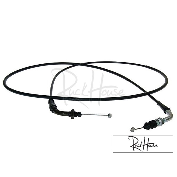 Throttle cable with a 75" total length, 45 degree angle mount. Can be used on both ruckus or gy6 carb. Type II throttle cable is for the models, where the cable is screwed to the handlebar mount. If in doubt, compare the images with your own throttle cable. The length of the supplied component is approximately 190cm.