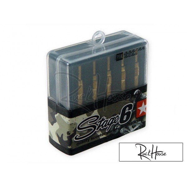 Ideal kit to set up your carburetor. 10 pilot jets in a handy plastic box, which makes it easier to grab the right one. And it's also cheaper than buying the jets individually. A set includes 10 pilot jets. There are different sets for all 21 to 28mm Stage6 PWK carburetors and 28-34mm Koso, each available in two different ranges of sizes.10 pieces, 35, 38, 40, 42, 45, 48, 50, 52, 55, 58