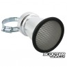 Bellmouths are more and more common at drag races - and there are good reasons for this trend: they optimize the flow of drawn-in air to the carburettor. With this airflow optimization, the bellmouth has benefits throughout the rev range and therefore increases performance. Can be used either completely open for maximum air passage or combined with the included mesh insert.