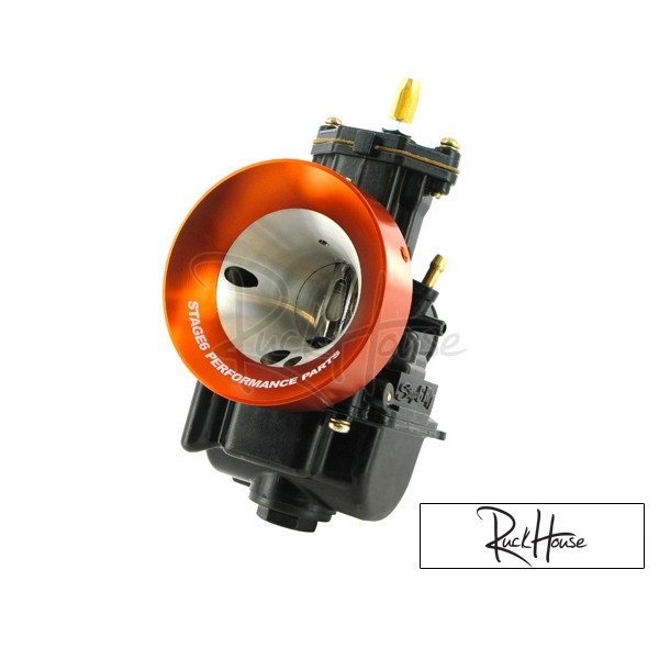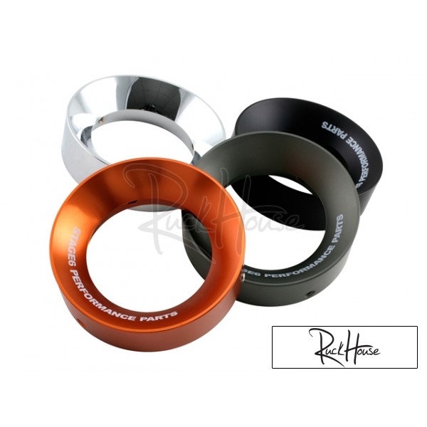 The Stage6 bell mouth is now available in the MK II version for Stage6 R/T, PWK and Koso carbs. The basic characteristics have been changed. Thanks to the outer hex socket screws, it cannot slip. The connection size for a possible mounting of air filters is increased to 70 mm. Available in orange, hard-anodised, black matt and chrome.