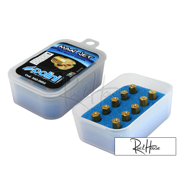 Ideal kit to set up your carburetor. 10 main jets in a handy plastic box, which makes it easier to grab the right one. And it's also cheaper than buying the jets individually. A set includes 10 mainjets. There are different sets for all 21 to 28mm PWK carburetors, or 17.5 to 23mm Polini CP carburetors, each available in two different ranges of sizes.