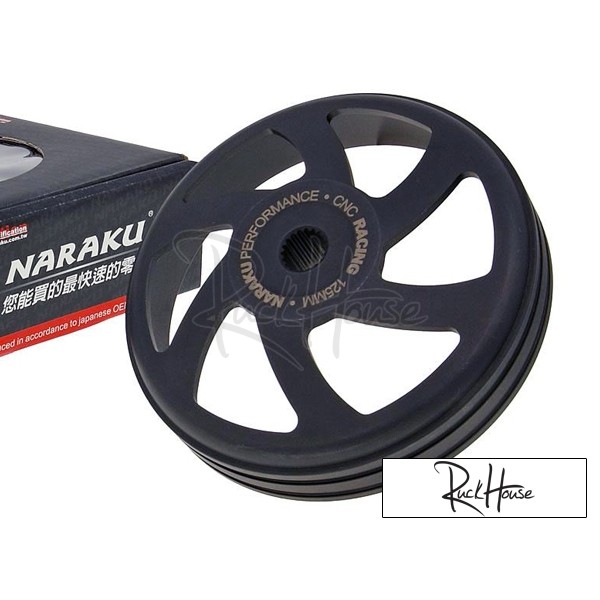Naraku CNC-machined racing clutch bell for Kymco, Honda and Chinese-built maxi scooters. Ensures vibration-free running and the cooling grooves help keep the operating temperature down. Not just a great addition to a racing engine.