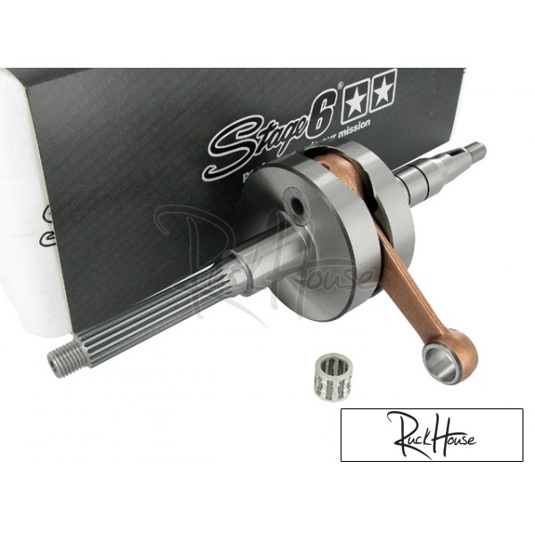The Stage6 HPC (high primary compression) crankshaft is a full-circle crankshaft, and as such increases primary compression in the crankcase. It has been developed in cooperation with F. Koopmans and is completely made of metal (i.e. no plastic padding). The bearings can handle up to 16,000 rpm! Made in Italy.