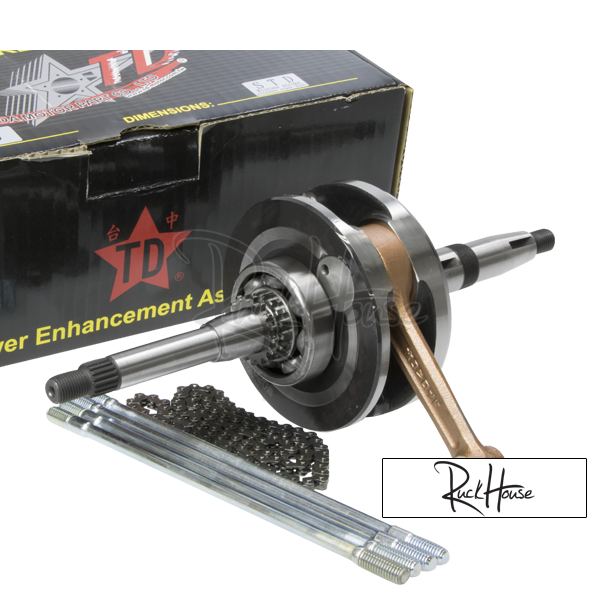 Taida Stroker crankshaft with 66mm stroke. This crankshaft is made to use in conjuction with Taida 67mm cylinder (232cc) and Taida 63mm (205cc) with 4V head. Include stud and chain (Chain : 96 / Studs : 218/225)