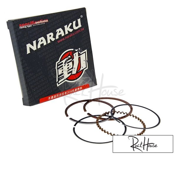 This piston ring set can be optionally used in Naraku 50cc 4-stroke cylinders, but is also suitable for original cylinders and standard cast iron cylinder sets from other manufacturers.
