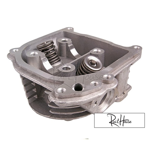 Complete cylinder head for 50cc 139QMB / QMA engines. Unlike many other available cylinder heads, this is a complete head. That means: valves, valve springs, valve shaft seals etc. This head is ready to install, with no need for grinding valves or fumbling with springs, or specialist tools. Dispatched ready to accept SLS. Cam shaft and rocker arm assembly not included. Delivery as shown.