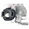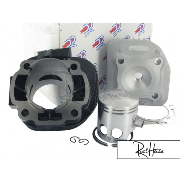 Looking for a bargain-priced durable cylinder for everyday use? If you are willing to use a cylinder with higher capacity, we recommend the 70cc cast-iron cylinder from DR's. Don't let the name "Evolution" fool you though - it has nothing to do with the Polini cylinder of the same name. The DR offers good workmanship, rpms and acceptable performance at a fair price. Comes with head, gasket set and piston. This cylinder has the angled exhaust port (Minarelli Style) but doesn't seem to be machined for the CPI/keeway stock oil pump. It could be required to remove it in this case.