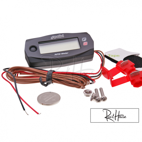 Small and compact the new RPM counter by Polini. Easy to fit, it live displays the figures of the RPM. The white backlighting improves vision in the night and it is active when connected to the battery. Polini RPM can also be used by motorcycles without battery as supplied with internal battery. In this case, to save the battery, it is not backlit.
