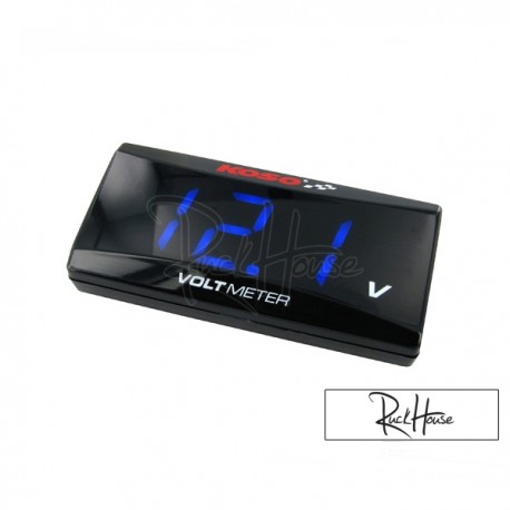 Elegant and stylish KOSO voltmeter. The Slim Style gives this a classy style and the compact construction allows for attaching this practically wherever you want. Digits are glowing bright blue! 56.4x27x11.6mm