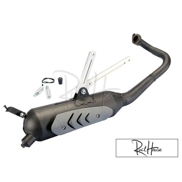Polini Motori presents the new range of performance mufflers with OEM style. The endless demand from the market of original spare parts has goaded Polini’s technicians to design a new range of mufflers for 50/70cc scooters. The body, completely made of steel with dull-black paint, has an inside silencer able to grant good performance, maintaining low noise emission levels. A thermal-resistant bulkhead has been fitted outside to protect from heat. 100% made in Italy