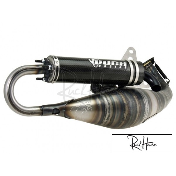 New hand-welded high-end exhaust system made by Spanish manufacturer VOCA Racing. This exhaust has been developed with one goal in mind: uncompromising performance for scooter racing engines that produce maximum power at more than 14,000 rpm.