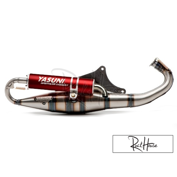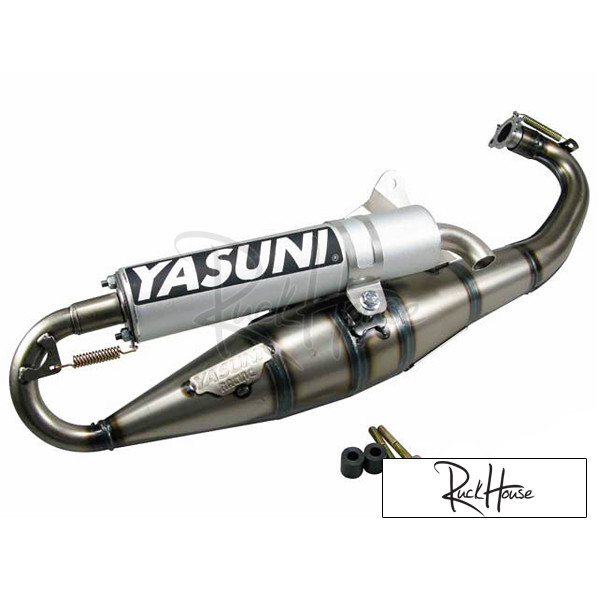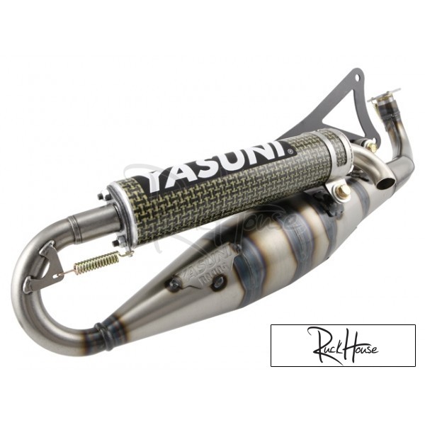 This is the kid brother of the Carrera 20 exhaust, which comes with a slightly smaller expansion chamber and higher resonance length. It is manufactured by the Spanish guys from Yasuni and has many strong points such as a high quality finish and attractive details like a reinforced tailpipe, a silencer that is stabilized via a spring and equipped with an o-ring. A very revvy exhaust that yields high top speed. Performance-wise one of our favourites.