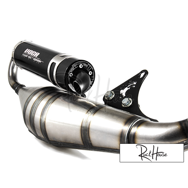 Voca offers here the aprovred Sabotage exhaust for minarelli horizontal engine with original cylinder kit 50 or 70cc. An exhaust with torque and power very similar to the best of the market such Bidalot S3 and Yasuni R. .. The muffler is black anodised. We recommend a carburetor from 17.5 to 21mm sport variator like malossi multivar or polini hi-speed.