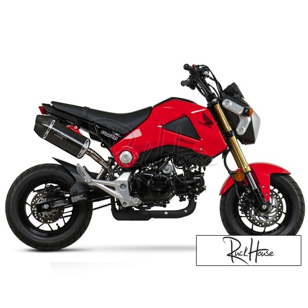 The Honda GROM has created quite a phenomenon in the motorcycle world and we're right on top it. We took the opportunity to try our new RS-9 muffler profile and it's been proven to be the perfect choice. The Parallelogram-shaped sleeve increases internal muffler volume, resulting in better noice cancellation and improved throttle response. Our system not only compliments the Grom's size and styling, it also significantly reduces weight, which is important for smaller machiens.