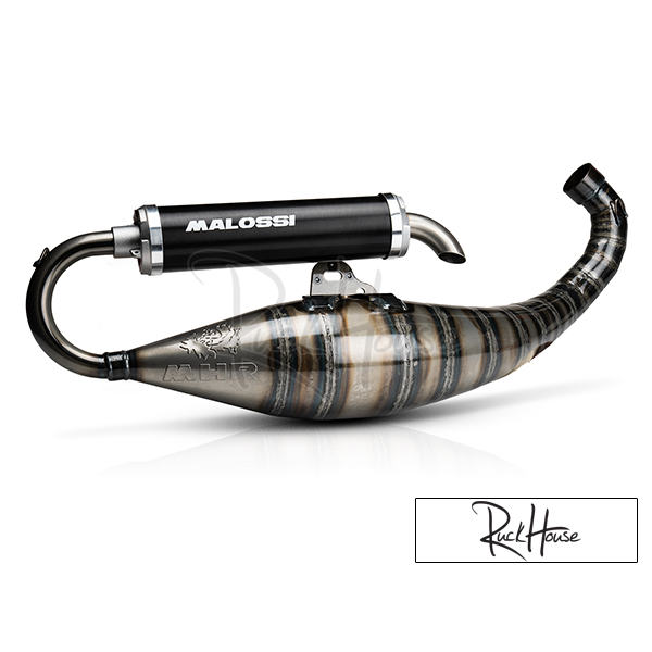 These Malossi exhausts have been specially developed for the 94cc Testa Rossa cylinders. Expansion chamber in clear finish with beautifully milled and blue anodised rear silencer made of aluminium; definitely characteristic of the Malossi MHR series.