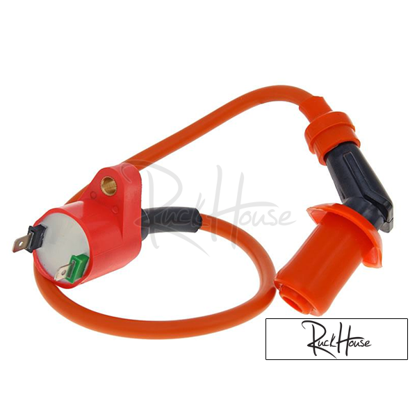 NARAKU Racing ignition coil with high-end secondary coiling from Japanese tuning KITACO. With this coil, the secondary voltage is almost doubled. The ignition voltage of the original ignition coil is approx. 16,000v. With the "race high tension coil" ignition from KITACO released 31,000v! The advantage lies in the better "translation" of the original input power. High ignition voltage ensures clean ignition at extremely high speeds and cold temperatures. It’s not just tuning freaks that will get their money’s worth, even with the cold start issues, the NARAKU coil is still a top choice. There are two versions of the coil available: the easiest way of distinguishing between the two is the cable connectors on the coil. Please check beforehand if the original coil has 1 or 2 connectors / pins.