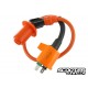 This ignition coil from Motoforce Racing nearly doubles the secondary voltage. The standard ignition voltage of the original ignition coil is around 16,000 V, and with this coil, you can reach a voltage of an amazing 31,000 V! The advantage is that it transforms the primary voltage more effectively. A high ignition voltage ensures a clean ignition at very high revs and at low temperatures - so this is not only the right thing for tuning freaks, but also the ideal choice if your ignition has cold start problems. Before ordering, you have to make sure that this is the type of coil you need; it has two connectors, so you can only use it, if your original coil also has two connectors. The coil comes with a silicone-sealed spark plug connector. You can of course also use other plug connectors. Attention: ignition coil with 2 connectors !!!
