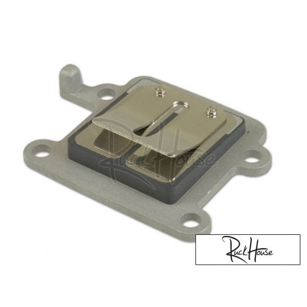 Bargain Racing reed valve with increased intake diameter and glassfibre reeds. Contrary to the original reeds, these here are rubber vulcanized, which makes sure that they close tightly. Performance at a fair price!