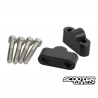 Got Lowered Racebars but handlebars hit the tank? We got the solution. We have made riser in both 21mm (.85") and 38mm (1.5"). allows riders better sitting positions, Made right here at our shop from Billet 6061 and hard Anodized black. Comes with Stainless Hardware and fits between OEM risers and our Racebars. Taller riders over 6 feet tall we recommend 1.5" riser.