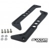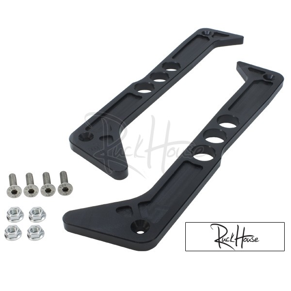 Our newly designed step rails will not work with our foot rest or frame brace. They will work with our Monster Kickers, but spacers are recommended between the step rail and the gas tank cover. Stainless steel gas tank cover is also recommended for this application.