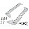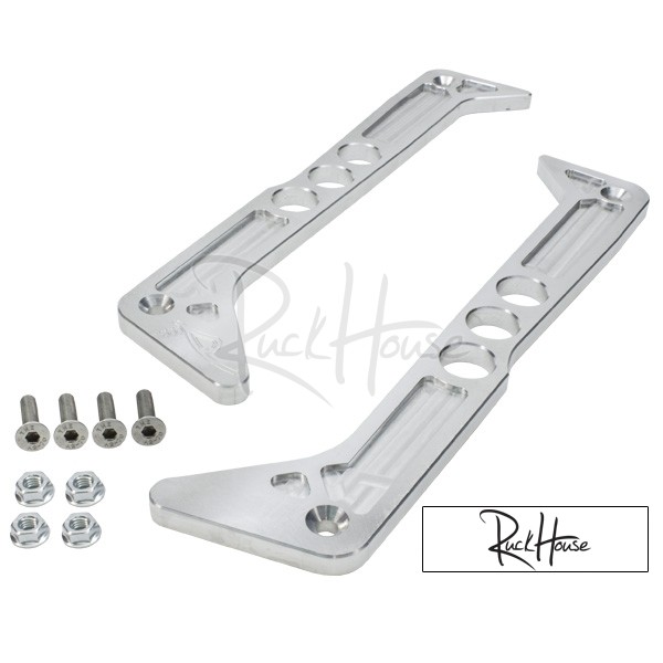Our newly designed step rails will not work with our foot rest or frame brace. They will work with our Monster Kickers, but spacers are recommended between the step rail and the gas tank cover. Stainless steel gas tank cover is also recommended for this application.