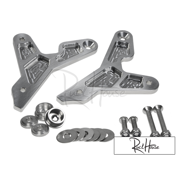 The TRS rearset backs are a great addition to your ruckus for that sportbike feel. Attaches to side of frame using stock holes and provided stainless hardware. Raw Billet Aluminum 6061 1/2" plate SUPER THICK AND STRONG; Mounts to your stock engine mount location; Pegs NOT included, however any aftermarket pegs will work! Made in USA.