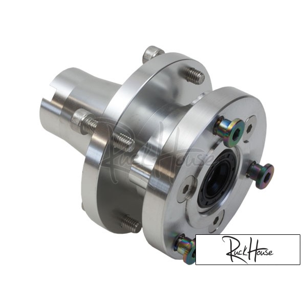 Professional Crafted front Billet Hub for 4x90 pattern front wheels with Brake Adapter flange, 3 NCY Titanium finish rotor bolt and 3 Stainless bolts to attach Brake disc adapter plate.