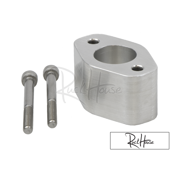Are you running a fatty, and have problems with the intake manifold hitting the frame? Or would you just like the forward-facing carb to sit more on-center in the bike to look better? Then you NEED this product. The CNC cut aluminum clocking flange IS 12.75MM THICK. Install it on your GY6 motor by removing the studs, bolting down the flange, then threading your studs back into the clocking flange, and trim out the cooling shroud just a bit for carb clearance.