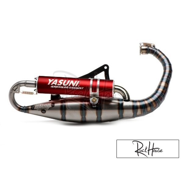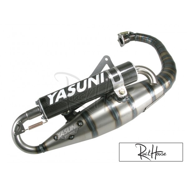 Made by Spanish manufacturer Yasuni, the racing system C16 offers excellent quality of finish and convincing details, e.g. reinforced tailpipe, silencer that is stabilized via a spring and equipped with an o-ring. The pipe is very revvy and offers high top speed. When it comes to power, this is one of our favourites - a real weapon when used with high-revving Midrace cylinders. No road homologation! The Yasuni Carrera 16 is the ideal complement for 70cc racing aluminium cylinders such as Athena Evolution and Stage6 Racing MKII, but also very good with 70cc aluminium sport cylinder kit. This exhaust is equipped with a classy Aluminium silencer, but also available with the following silencer : Aluminium Black, Carbon and Carbon Kevlar. You just have to choose the silencer you want in the dropdown menu.