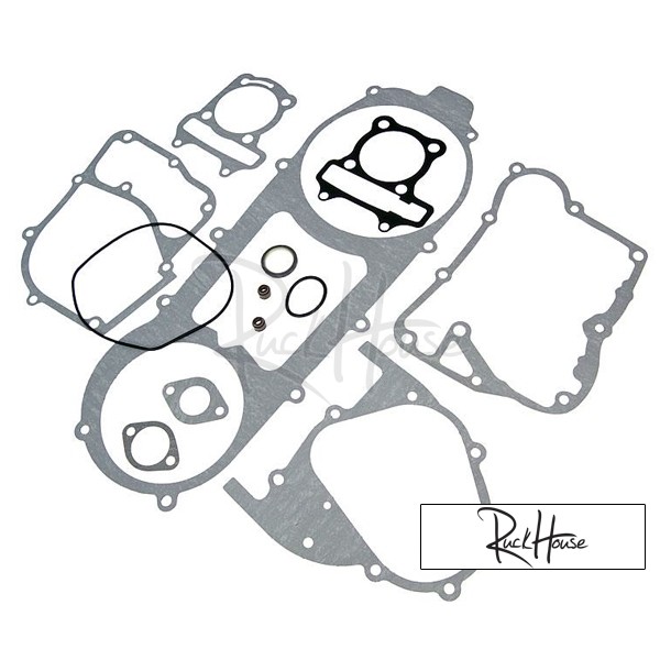 Complete engine gasket set for 125/150cc GY6 engines (152QMI). Contains all relevant gaskets. Cheaper than individual purchasing. Does not include engine shaft seals, we offer these as a separate set.