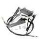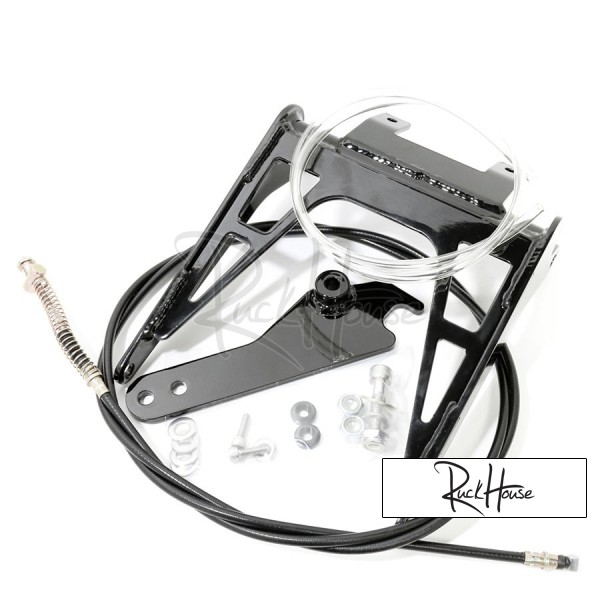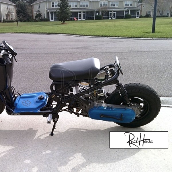 TRS 9.5 Extension kit Version 3. POWDER COATED GLOSS BLACK not painted. FITS ALL NPS-50 2003 And Newer. Version 3 now mounts to cross brace, comes with beauty washers, and lighter deign. NO drilling out nuts required. Still has same 3piece locking design so everything is trued. No welding or cutting required. Shock Mount is shorter and has 2 positions to lower scooter more. EVERY PIECE OF THIS IS MADE IN THE USA, Even the washers. We highly recommend a NCY SHOCK OR LOW DOWN SHOCK when upgrading to this mount as the factory shock is too soft . We also advise to look into our airbox eliminator kit for this as the oem airbox will not fit. Another great add would be the coolbox reservoir which sits higher on the bike for better clearance! Your stock coolant tank will hit. Many people get a coolbox or make their own. Comes with all hardware, +6 Rear Brake line and 3 ft of Helix Translucent Fuel line. Will work with stock wheel, 12×5 and 10×5 . Will not work with Fatty 12×8.