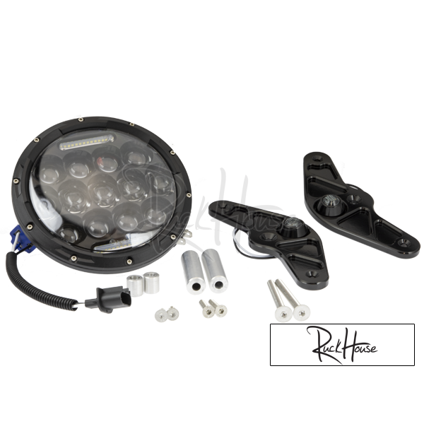 Insired by Mike Wazowski from Monsters Inc. These brackets allow you to replace your stock Grom headlight with a single round 7″ light. The brackets come anodized black or raw, and are built in with flush mounted turn signals. Includes: Brackets BLACK or RAW / Turn Signals amber eagle eye / Spacers / Hardware / Round 7″ LED LIGHT. You will need to buy a dc rectifier to run this or you can do a wiring hack. Check youtube grom videos for the install. No instructions or tech support included - youtube and google are your friend. FOR GROM SF year you will need to purchase the light stay from the og grom to install this.