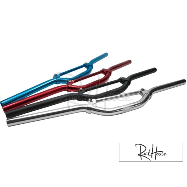 This downhill handlebar has a cool, shot-peened look and is available in a choice of colours. Ends are open so as to allow for fitting anti-vibration handlebar weights. The fitting handlebar clamp can be ordered here for some models; if yours is not included in our product range, you can also search in bicycle shops for a fitting clamp with reduction shim.