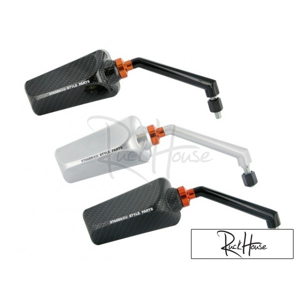 There aren't that many high-quality mirrors in F1 look on the market, but now the Stage6 Styling Department has taken care of this problem. The results are mirrors that sport an unobtrusive Stage6 logo; with real mirror glass, ball joint with wide adjustment range and in first-rate colour versions. Fitting for all scoots with M8 thread; for Peugeot models, a fitting adapter will be offered to ensure a trouble free installation.