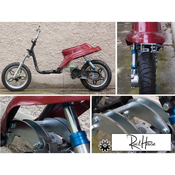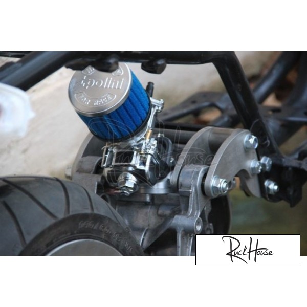 The Easyboost Racing Subframe allow you to easily install Minarelli horizontal engine on Bws'r / Zuma (Pre-bug) that have factory Minarelli Vertical engine. The subframe fit over the original fixations of a framework without any welding. Assembly takes less than 10 minutes. Made of galvanized steel (8mm thick) and laser cut ensures optimum quality and resistance. This model is made for use reverse intake with carburetor facing rear wheel (Stage6 reverse & Malossi 360 intake).