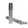 Front Scooter Fork Adapters for the Honda Grom! These adapters are what you need if you want to bring a whole new look and aggressive feel to your Honda GROM! The Scooter Fork Adapters allow you to install an front fork RRGS/NCY Ruckus-style Fork Assembly on your Grom. ***Warning: This setup WILL require a decent bit of modification, and because of the wide variety of forks on the market, it will require that customer spacers be made to center the wheel, and locate the caliper on the brake rotor properly! Even though it does "bolt in", this setup does require a decent level of skill to install. If you don't know anything about making spacers, please take it to someone who does for the installation!***Does not fit the larger OEM Ruckus Forks, or ATR Forks***. What is included? Included in this setup are the two SOLID Billet 6061-T6 Aluminum Fork adapters. These are designed to install in place of the stock forks, and then allow you to slide a Honda Ruckus/Zoomer fork into the lower end of the adapter, and clamp it just like you would on a scooter. What considerations are there for installing this? If you use a fork such as an RRGS or NCY "low down" fork, your stock headlight WILL NOT FIT! You will need to do something custom for a headlight. Also, the front of the bike will be VERY low, and if you combine that with the 6" rear lowering link to get the exact same stance as our White MSX125, you WILL need to cut the stock kickstand mounting point off of the bottom of the frame, or the bike will not be able to lean without hitting on the left side. On the MSX, we had to make a custom kick stand mount on the swingarm. However, with the USA bike, it has a kick stand switch... so you will either need to bypass that, or extend the wiring back to the swingarm if you decide to use the swingarm to mount it. We are working on a kick stand solution, but that is still a little bit of time out. Another thing to consider, is header height... the stock header will be WAY too low... even if you modify it like we did on the white bike before we got the HotLap exhaust. A custom exhaust may be required for this setup, or heavily modifying an off-the-shelf header may need to be done. The only header/exhaust that is KNOWN to fit this bike, is the HotLap exhaust available through MiniMotoLab.com, as that exhaust was made specifically for this setup. If you run a longer front fork, like the regular NCY, or long RRGS scooter forks, you will have much better clearance, but the bike won't be nearly as low. Also, you MIGHT be able to run the stock headlight with a longer fork setup... but then that slightly defeats the purpose of this kit... You will not be able to run the stock front fender without custom brackets to fit whatever fork setup you decide to use. You will want to run a stiffer rear shock, or add pre-load... this will give you better ground clearance while riding the bike. You WILL have to flip the wheel around so the rotor is on the other side of the bike from stock, which will also mean you will need to flip the tire on the wheel before going back out for a ride so the tire is rolling the proper direction! DO NOT use forks from overseas that locate the axle BEHIND the centerline of the fork... if you do, the tire will hit the cylinder head... some forks extend the axle to the front side of the fork, and these would be ok, but you will be changing the rake of the bike, and it will handle differently. THIS IS NOT FOR EVERYONE!!! If you enjoy popping wheelies, stunting, dragging knee in corners, etc... don't bother with this setup... If you are looking for simple bolt-on, this setup is not for you... there is a fair bit of "figuring" that you will need to do to get this setup to work on your bike!