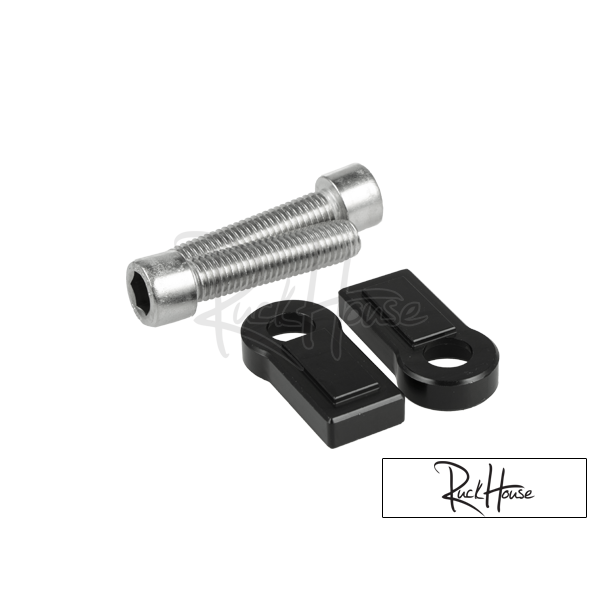 Looking for a way to extend your TRS Slip-in Stretch Kit even further?? Want a nice upgraded option to the bolt that is included in the kit? Check out the TRS Billet Stoppers! These Billet Machined Aluminum Stoppers have an indent on the back so that once installed, it’s possible to run with the bolt in the forward position or rear position without worrying about the bolt slipping in the swing arm tube! Our instructions for the Slip-In Stretch Kit specify that you should run the included bolt all the way to the front of the adjustment slot… this keeps the bolt from being able to slide forward and possibly having the chain clack-up while riding, which could be VERY dangerous! With these Billet Stoppers, it keeps it from being able to slide, and you can run the bolt to the back of the slot, gaining a little OVER 1″ of additional stretch length! The new stoppers come with Stainless Steel hardware and come in Raw or Anodized Black for a much more durable and stealthy finish!