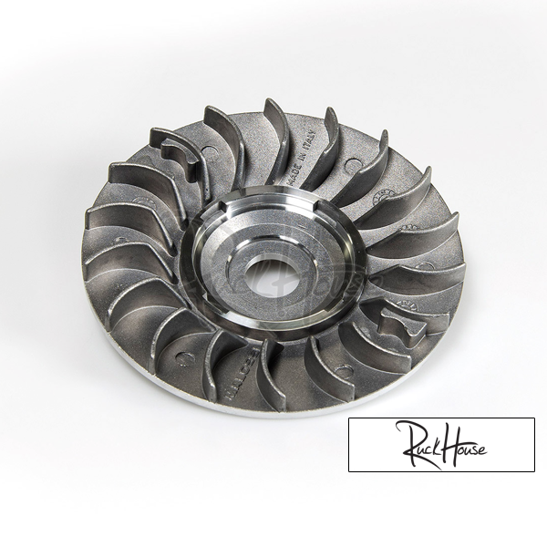 It’s a fixed half-pulley with a diamond finish of the belt-side pulley surface and a redesigned working angle to further increase the gearing range. This component completes the Multivar and renders it unparalleled. Specially designed for the line of variable-speed drives for scooters, it further improves the performance of the drive belt. It is not just a simple accessory, but a very important part for guaranteeing the long life of all the transmission components. The temperatures produced inside the crankcases where variators work with V-belts are prohibitive at critical moments and certain parts, such as transmission belts and variator rollers, sometimes suffer irreparable damage. There are cases in which the rollers could even reach the melting point. Apart from its other advantages, Ventilvar has a greater cooling capacity than the original half-pulley; that’s a result that makes it indispensable for safe and sporty driving. NB: it can be assembled with Multivar and with original variator
