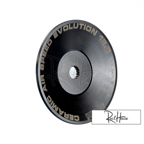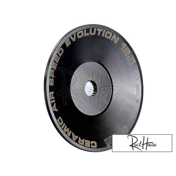 V-belt pulley from the Ceramic Air Speed Evolution range, for Minarelli engines. The pulleys are manufactured from a single block of material, alloy coated and then ceramically treated. The larger fan wheel reduces the temperature in the engine housing and reduces wear.